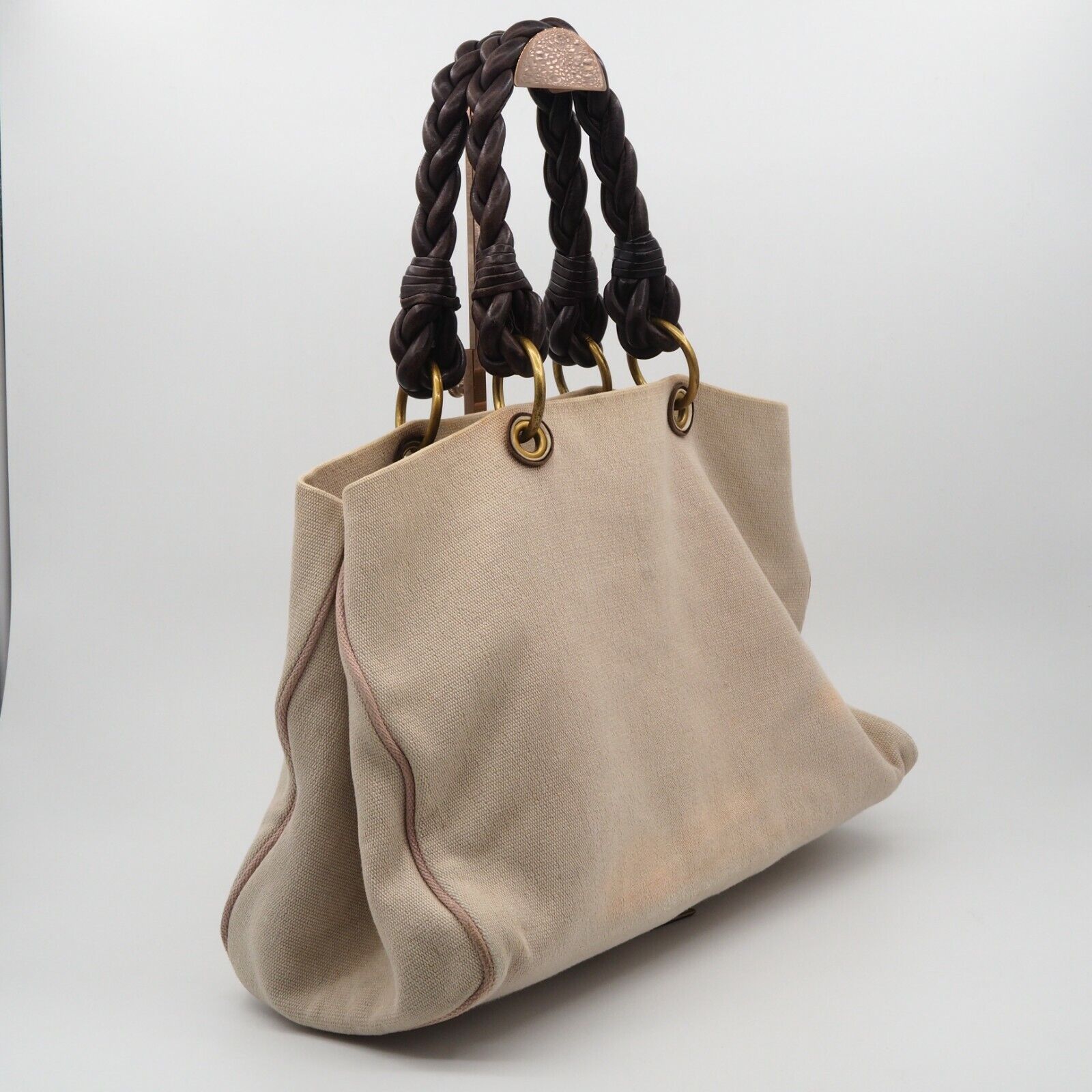 Veneta Beige Canvas / Leder 171267 V6336 Luxus Shopper Tasche NP: 600 €
