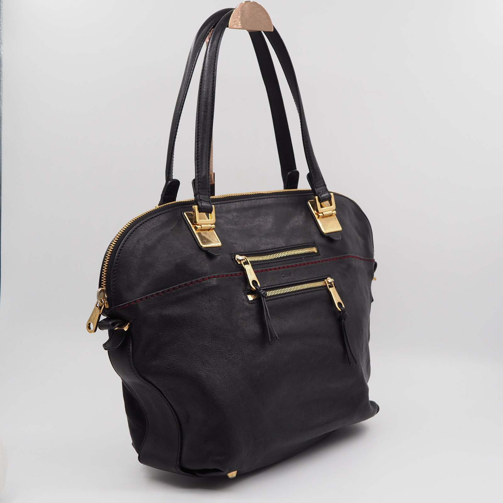 Diese stylische Tote von Chloé wurde in Italien aus feinstem Kalbsleder Handgefertigt. Sie befindet sich in einem guten gepflegten Zustand. Außen leichte Kratzer am Hardware. Der Leder – Oberfläche sowie die Handgriffe sind neuwertig. Innen leichte Flecken, siehe Bilder aber keine Gerüche oder Beschädigungen. Sehr geräumig.