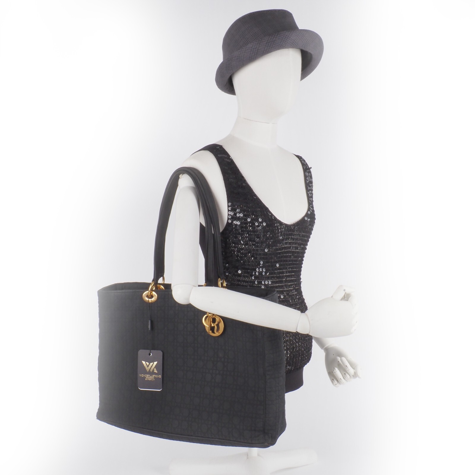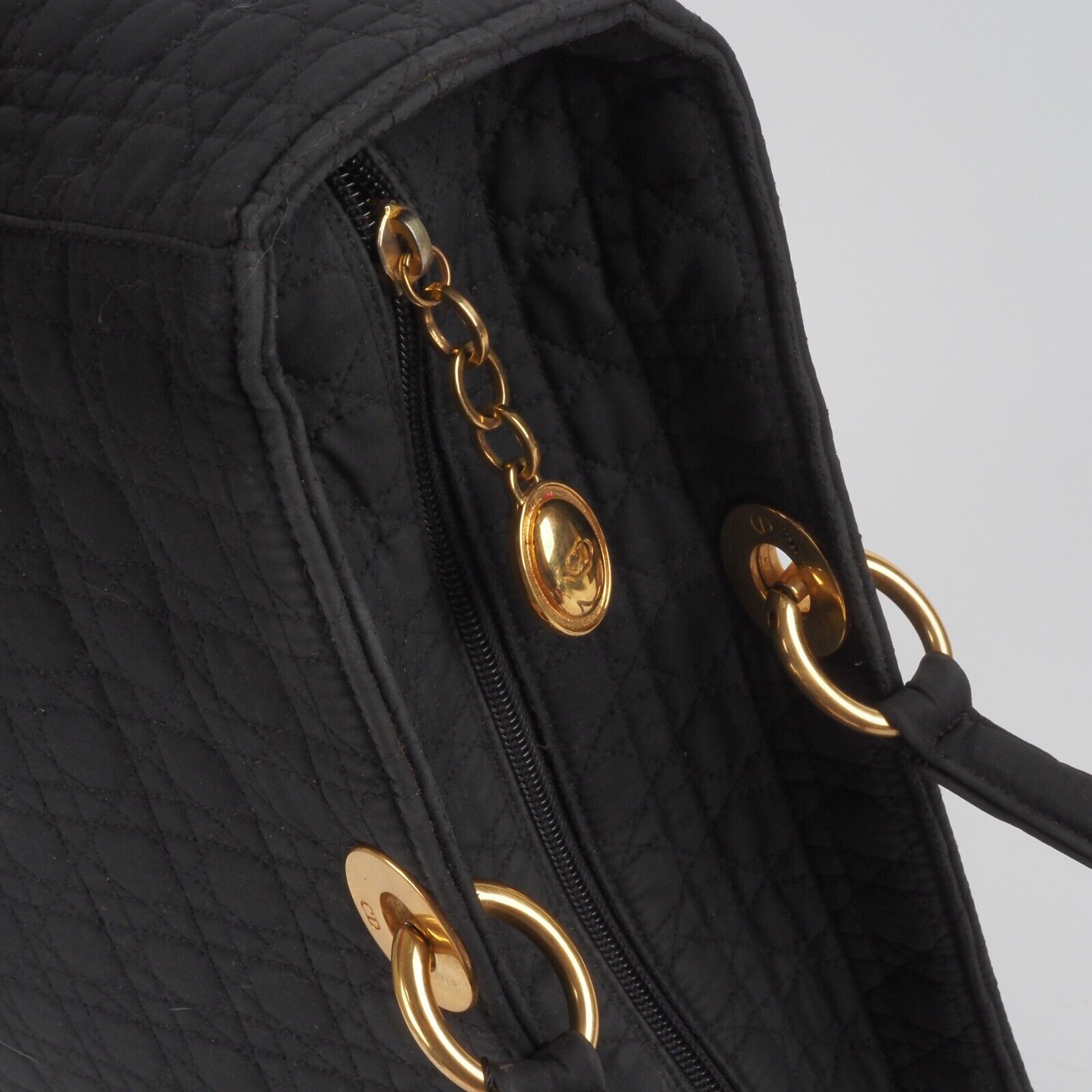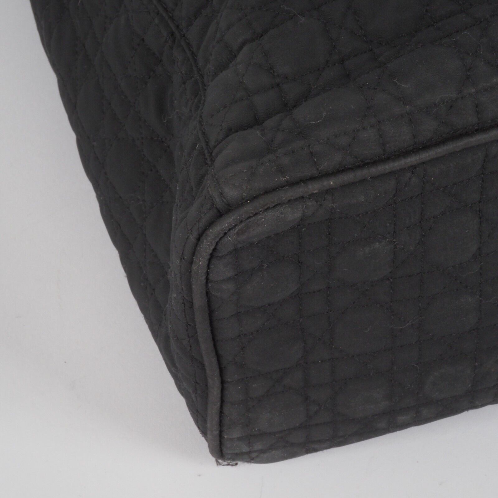 Diese schöne Cannage Medium Handtasche wurde in 1998 Jahren in Italien Handgefertigt. Sie ist außen schwarzem Stoff mit goldener Hardware. Innen Nylon mit klassischem Dior Logofutter. Die Tasche ist in relativ gutem Vintage Zustand. Die Hardware hat leichten Kratzer. Innen und außen relativ sauber. Die Ecken sind unten leicht verschlissen. Die eingebaute Seitenwände sind leicht verbogen.