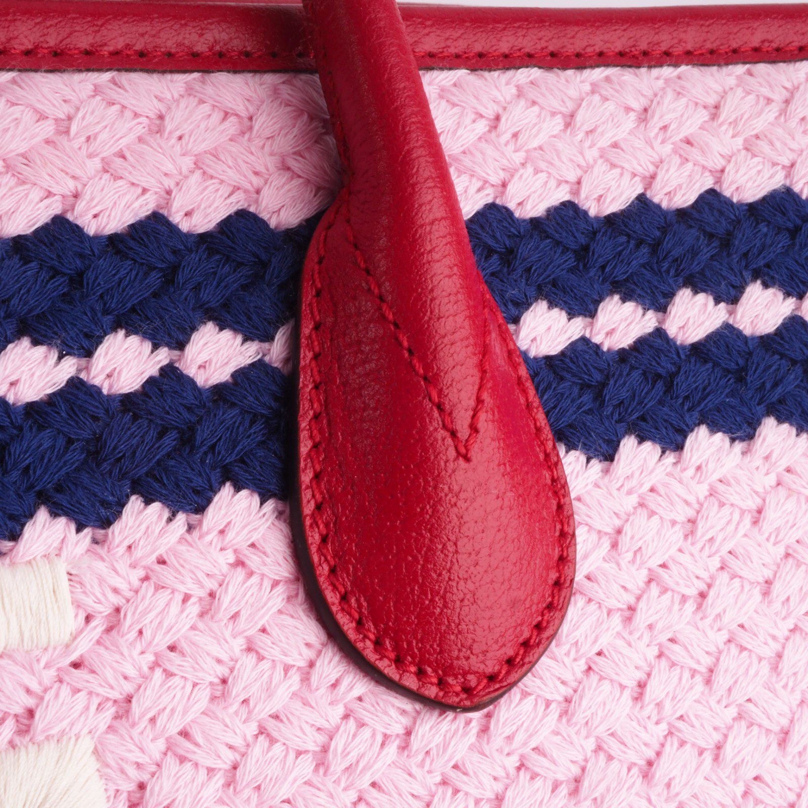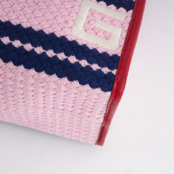 Diese limitierte Shopper von GUCCI ist aus geflochtener Baumwollmischung mit Lederrahmen und klassischen Leinen Innenfutter. Die Tasche ist eine Sonderedition mit SYDNEY Schriftzug. Mit verstellbarem Schulterriemen. Die Tasche ist sehr geräumig und so gut wie neu mit minimalen Gebrauchspuren. War nur 1-2 mal benutzt. Innen und außen sauber..