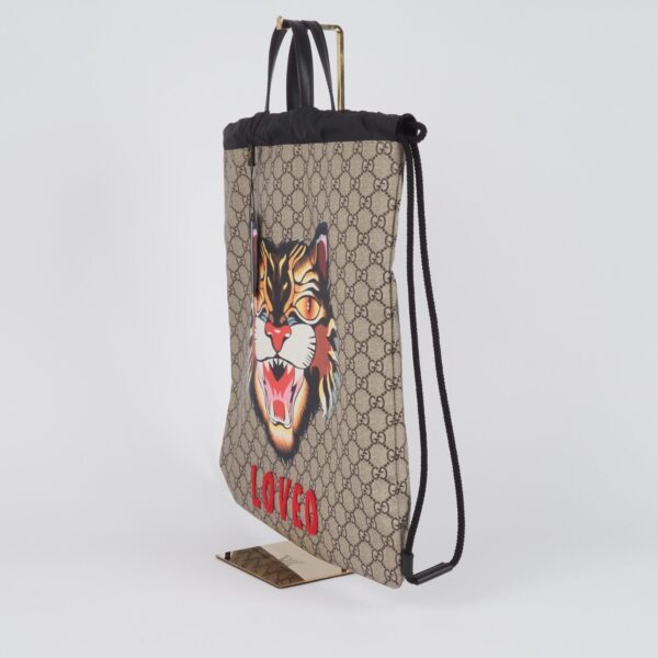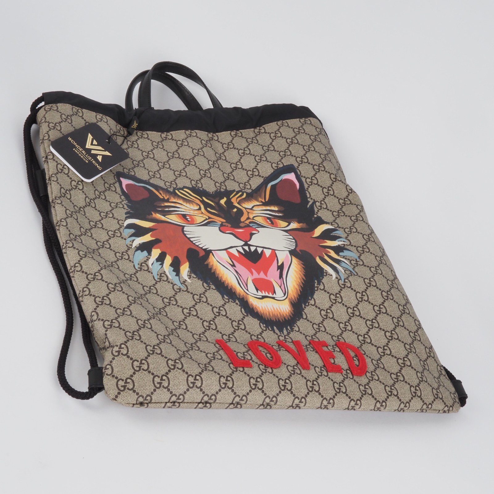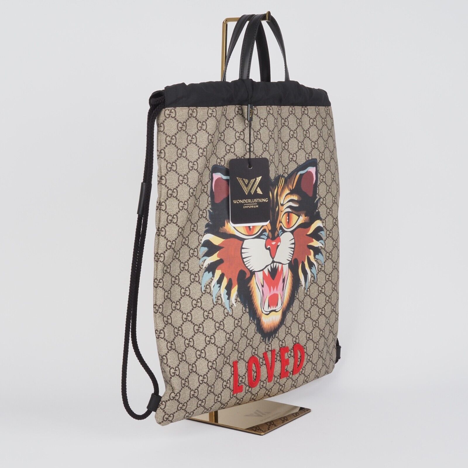 Diese limitierte Tasche von Gucci kann als Rucksack. als Sportsack oder als Tragetasche getragen werden. Mit Angry Cat Motiv. Herrenmodell passt aber an Damen auch perfekt. Neuwertig, ohne erkennbaren Gebrauchspuren. Innen und außen sauber und frei von Gerüche