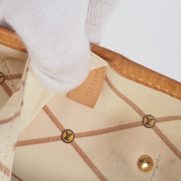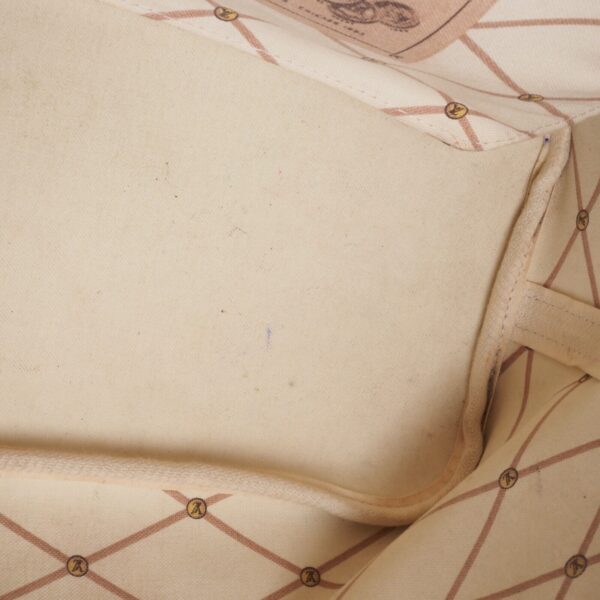 Diese wunderschöne limitierte Neverfull MM Summer Trunk stammt aus der Capsule Kollektion 2018. Mit Pochette. Die Tasche ist außen einwandfrei mit leichtem Patina an den Vachetta-Lederteile. Die Lederteile sind nicht rissig oder Brüchlig. Die unteren Ecken sind auch sehr gut erhalten. Der Innenfutter ist leicht verschmutzt, mit wasserflecken und hellrote flecken – siehe Bilder. Die Pochette ist neuwertig. Frei von Gerüche.