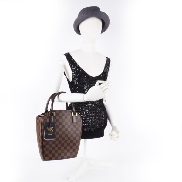 Diese wunderschöne super seltene Sarria Seau Vertical Tote Handtasche von Louis Vuitton wurde in 2001 in Frankreich gefertigt. Die Tasche ist in einem nahezu neuwertigem Zustand. Mit absolut minimalen Gebrauchspuren. Innen und außen sauber und frei von Gerüche. Kommt mit Staubbeutel.