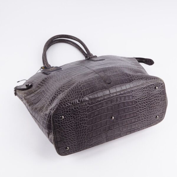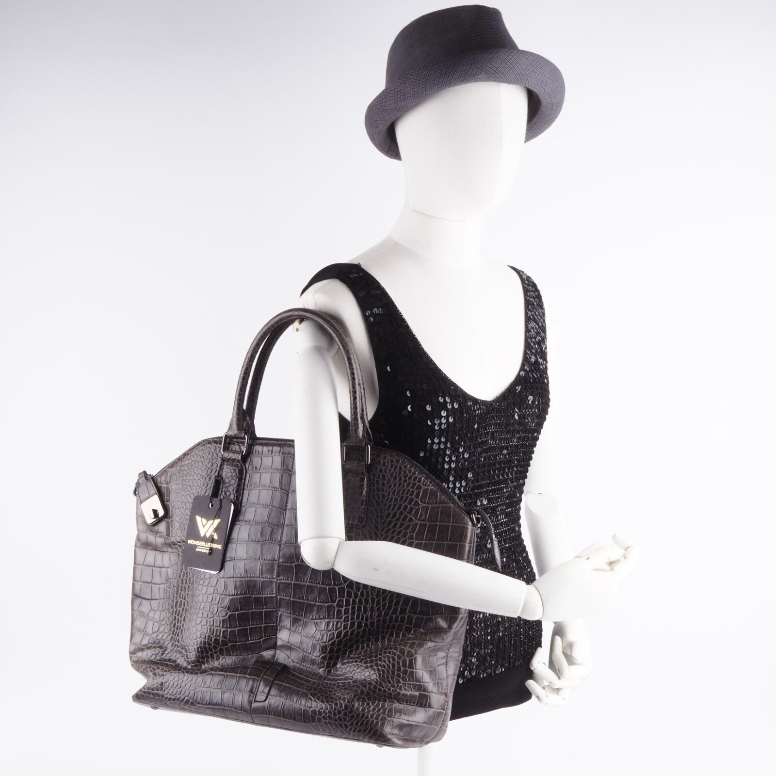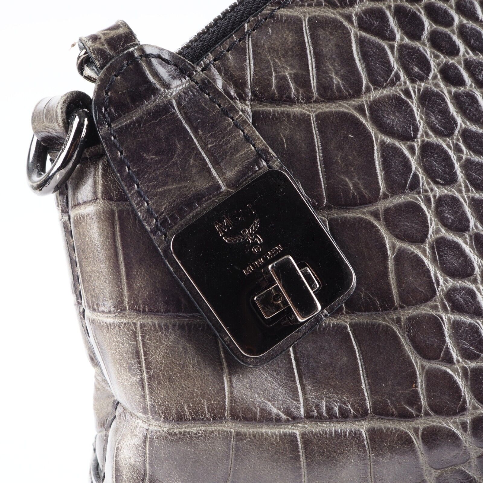 Diese schicke große Tote von MCM München ist aus Leder in Croco Optik. Die Tasche ist OHNE Schulterriemen, also nur Handtasche, man kann aber einen Schulterriemen anhängen. Die Tasche ist innen und außen sauber, gepflegt und frei von Gerüche. Mit leichten Gebrauchspuren wie zB Abrieb an den unteren Ecken.