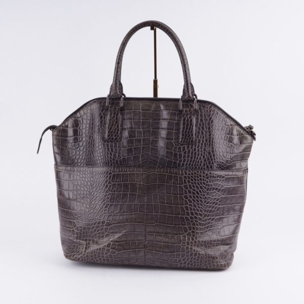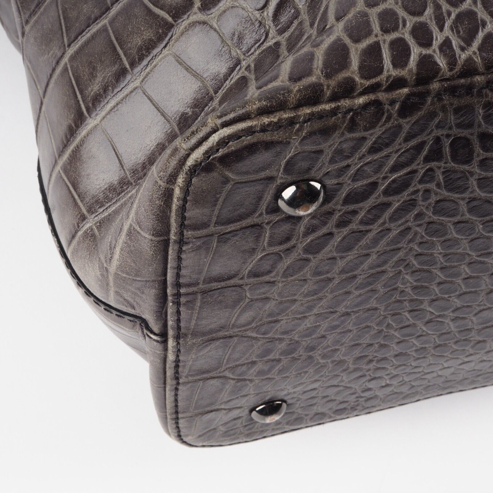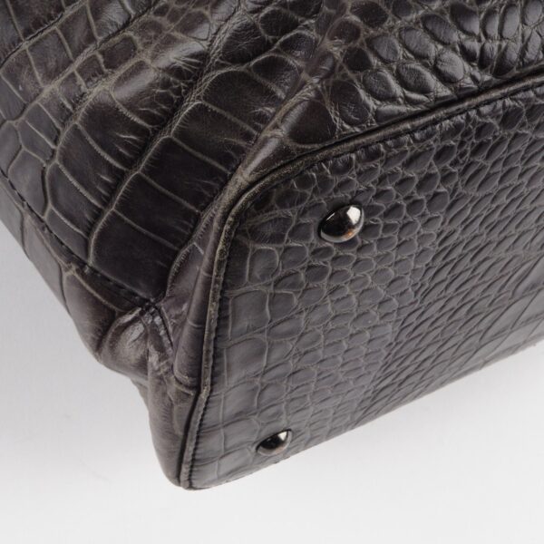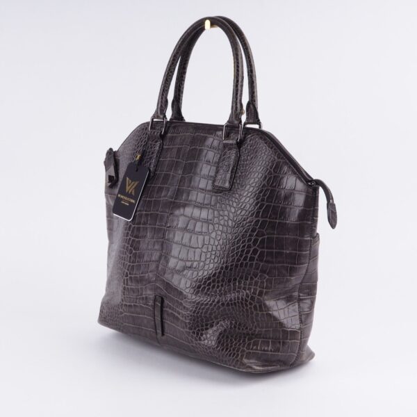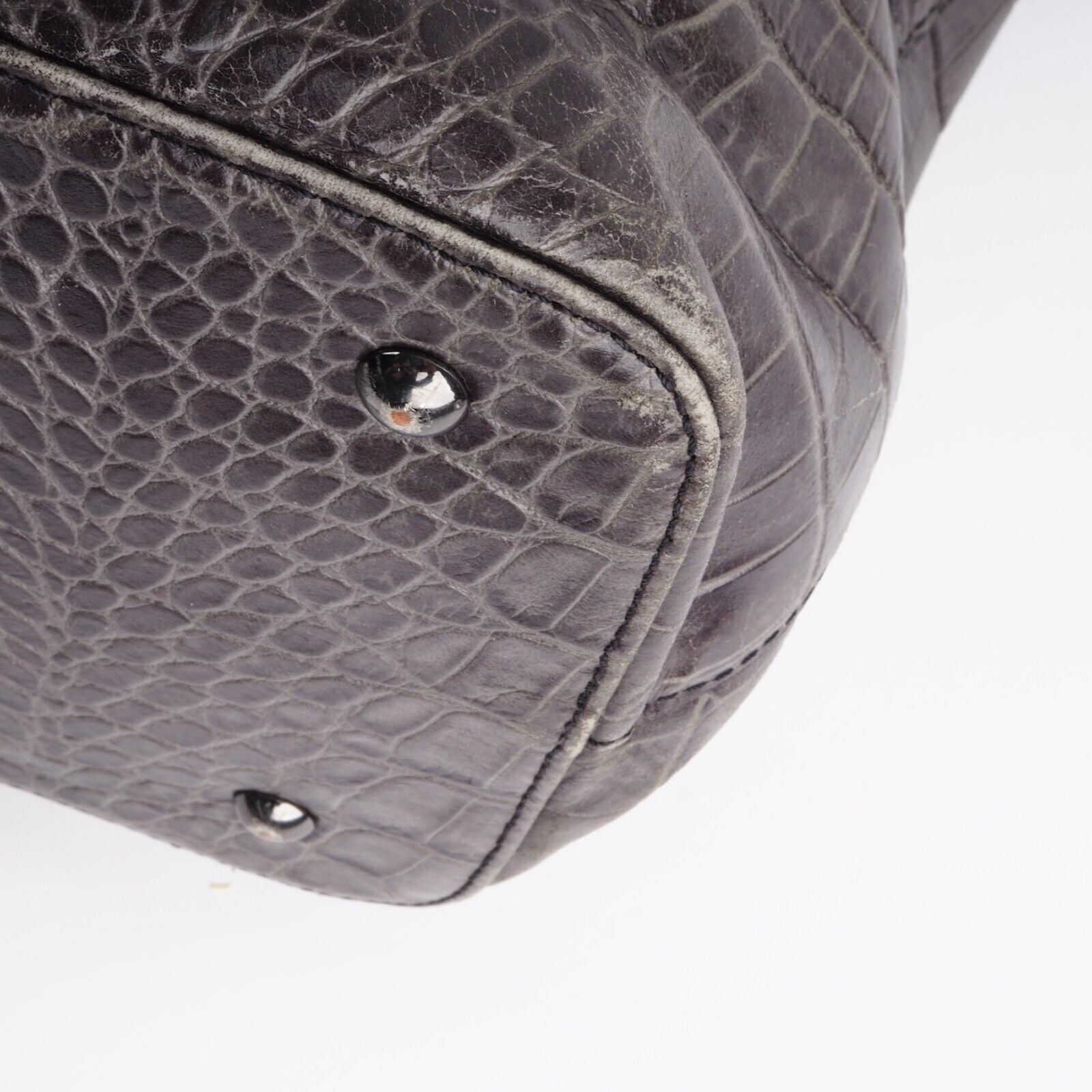 Diese schicke große Tote von MCM München ist aus Leder in Croco Optik. Die Tasche ist OHNE Schulterriemen, also nur Handtasche, man kann aber einen Schulterriemen anhängen. Die Tasche ist innen und außen sauber, gepflegt und frei von Gerüche. Mit leichten Gebrauchspuren wie zB Abrieb an den unteren Ecken.