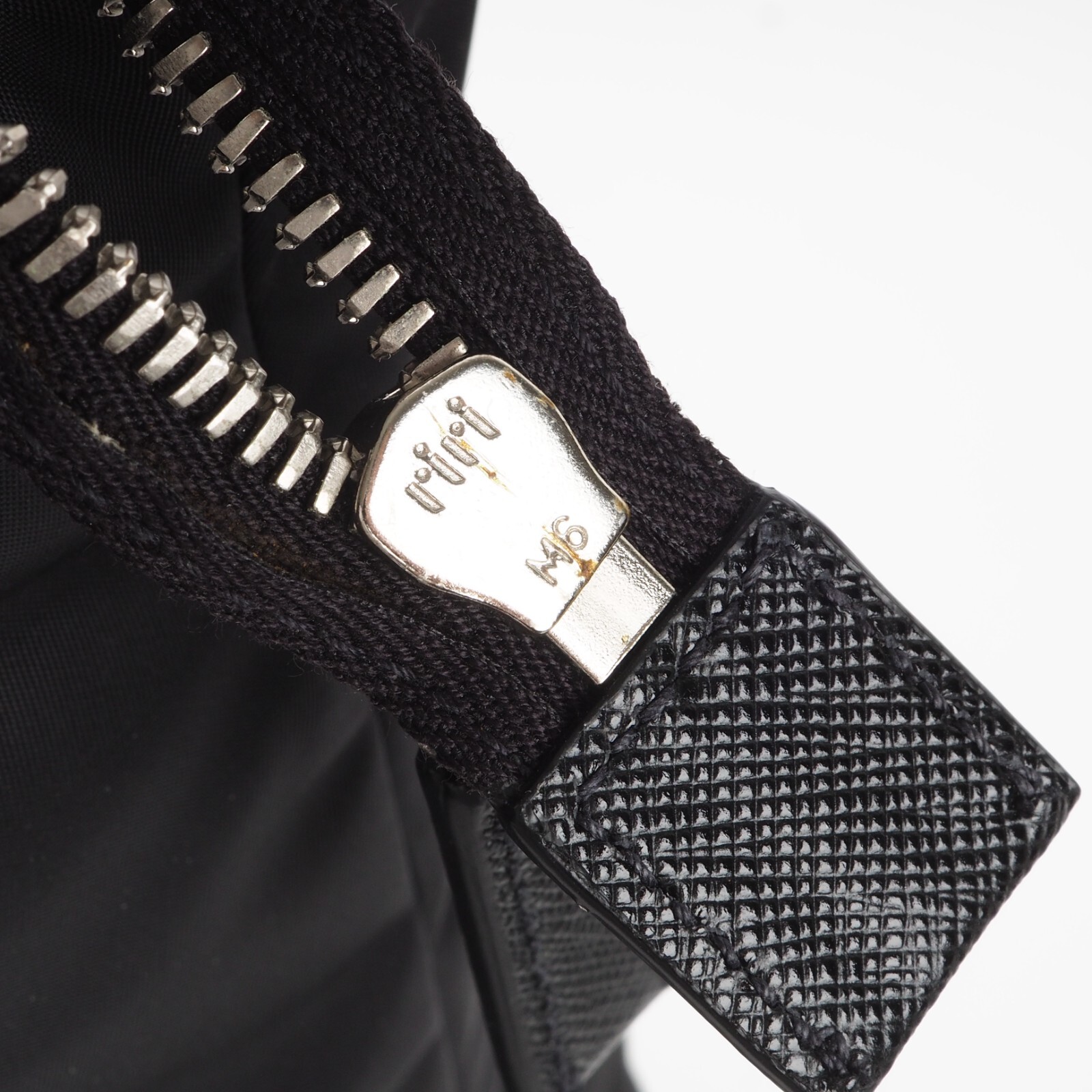 Diese Tote Bag mit einem Mix aus ikonischen Materialien ist mit Details aus Saffiano-Leder akzentuiert. Das Accessoire ist aus Re-Nylon gefertigt, einem technologisch innovativen Material, das aus im Meer gesammelten, recycelten und gereinigten Kunststoffen hergestellt wird. Das emaillierte Triangolo-Logo aus Metall rundet das Design mit stilvollen, minimalistischen Linien ab. Um das Produkt nachhaltig zu pflegen, seine Eigenschaften zu erhalten und die Umweltbelastung zu verringern, wird empfohlen, das Produkt nicht zu oft zu waschen, es nach jedem Gebrauch auslüften zu lassen und die chemische Reinigung einer spezialisierten, umweltfreundlichen Reinigung zu überlassen.