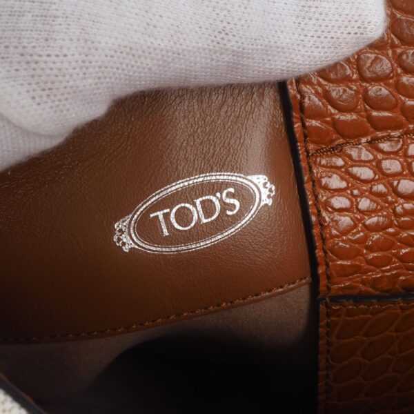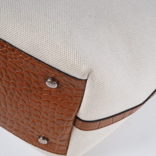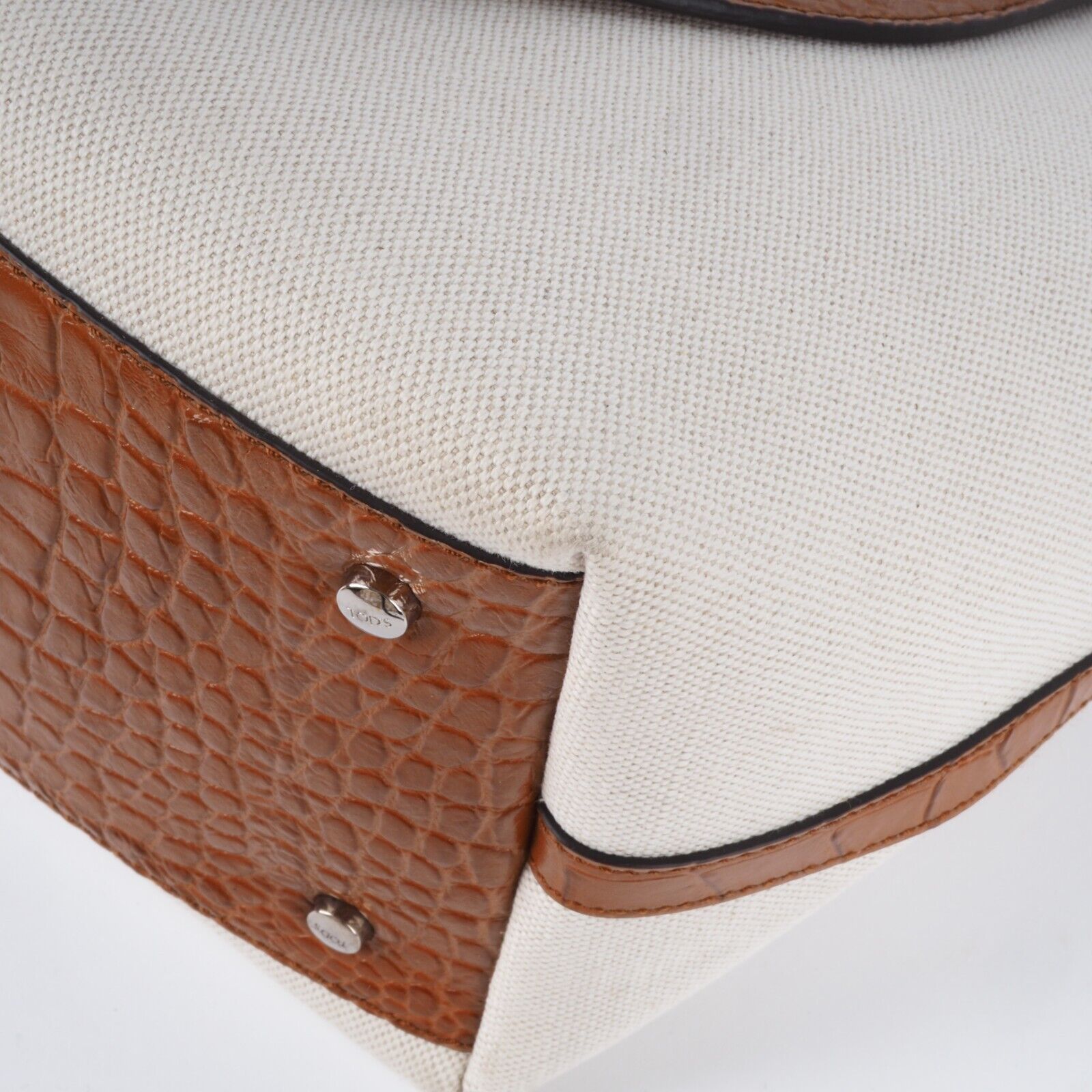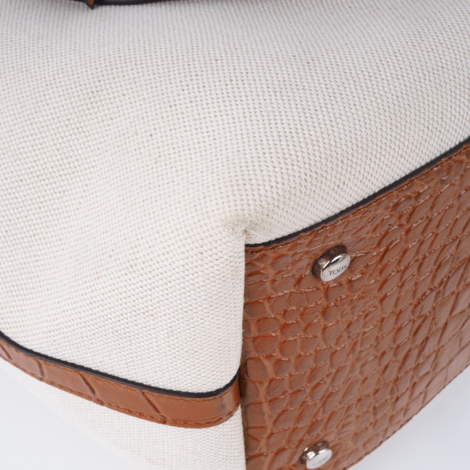 Diese stylische seltene Tote von TOD´S wurde aus Leinen Canvas und Leder in Kroko´-Optik in Italien hergestellt. Der Innenfutter ist aus butterweichem Veloursleder. Die Tasche ist überall ausverkauft. Sie ist wie neu, vielleicht 1-2 mal getragen. Ohne Gebrauchspuren, innen und außen sauber und frei von Gerüche.
