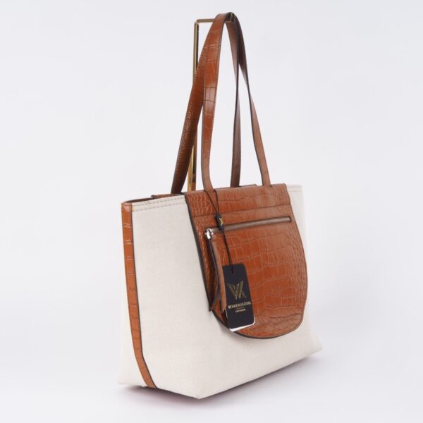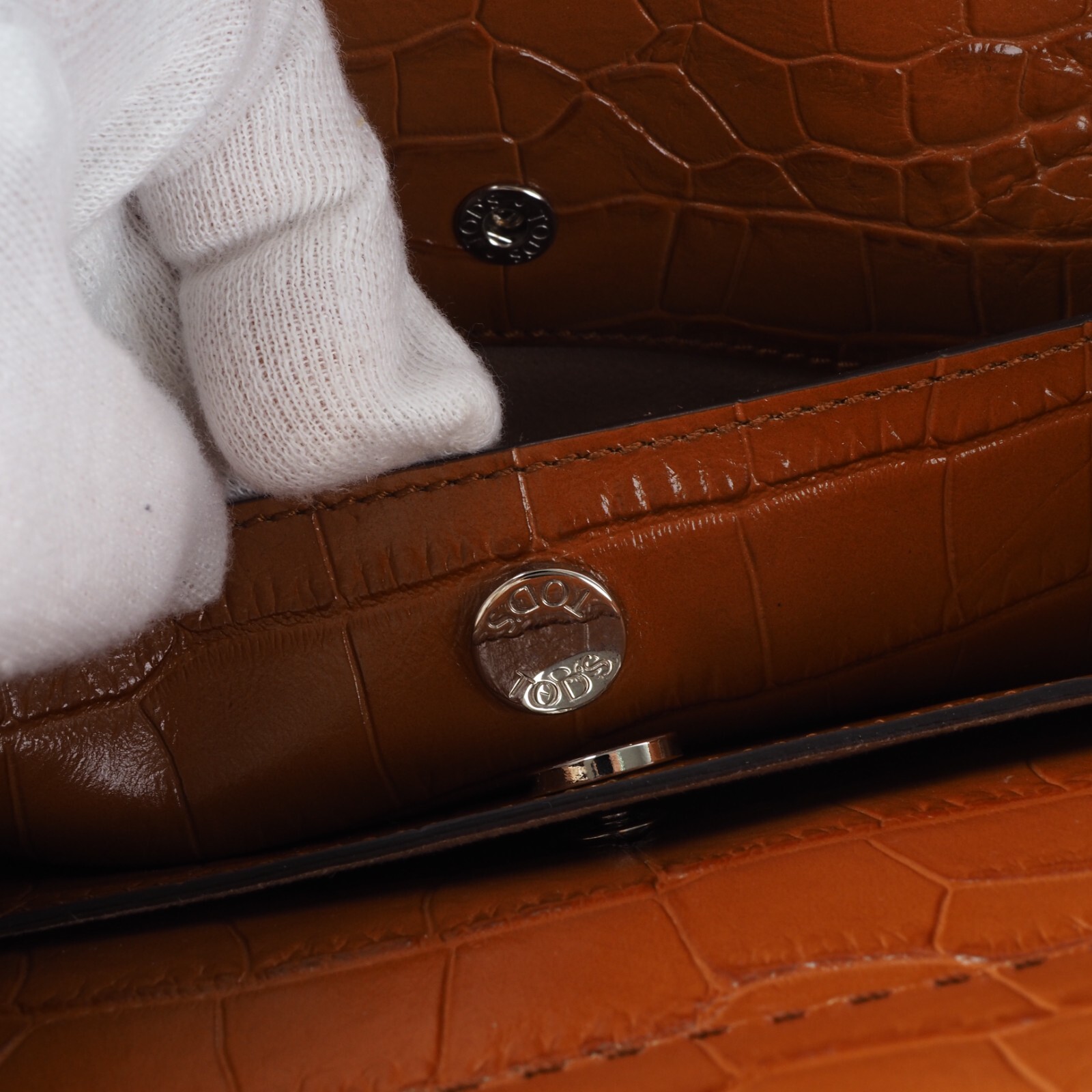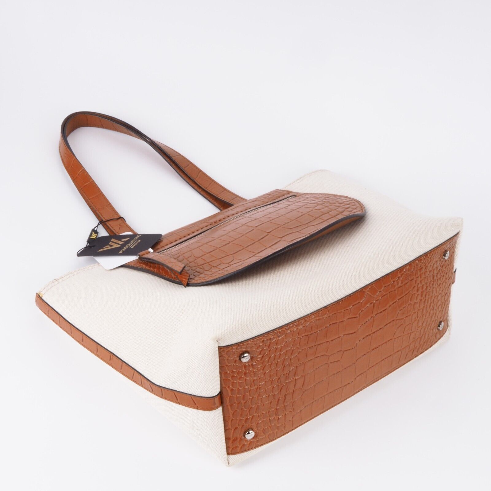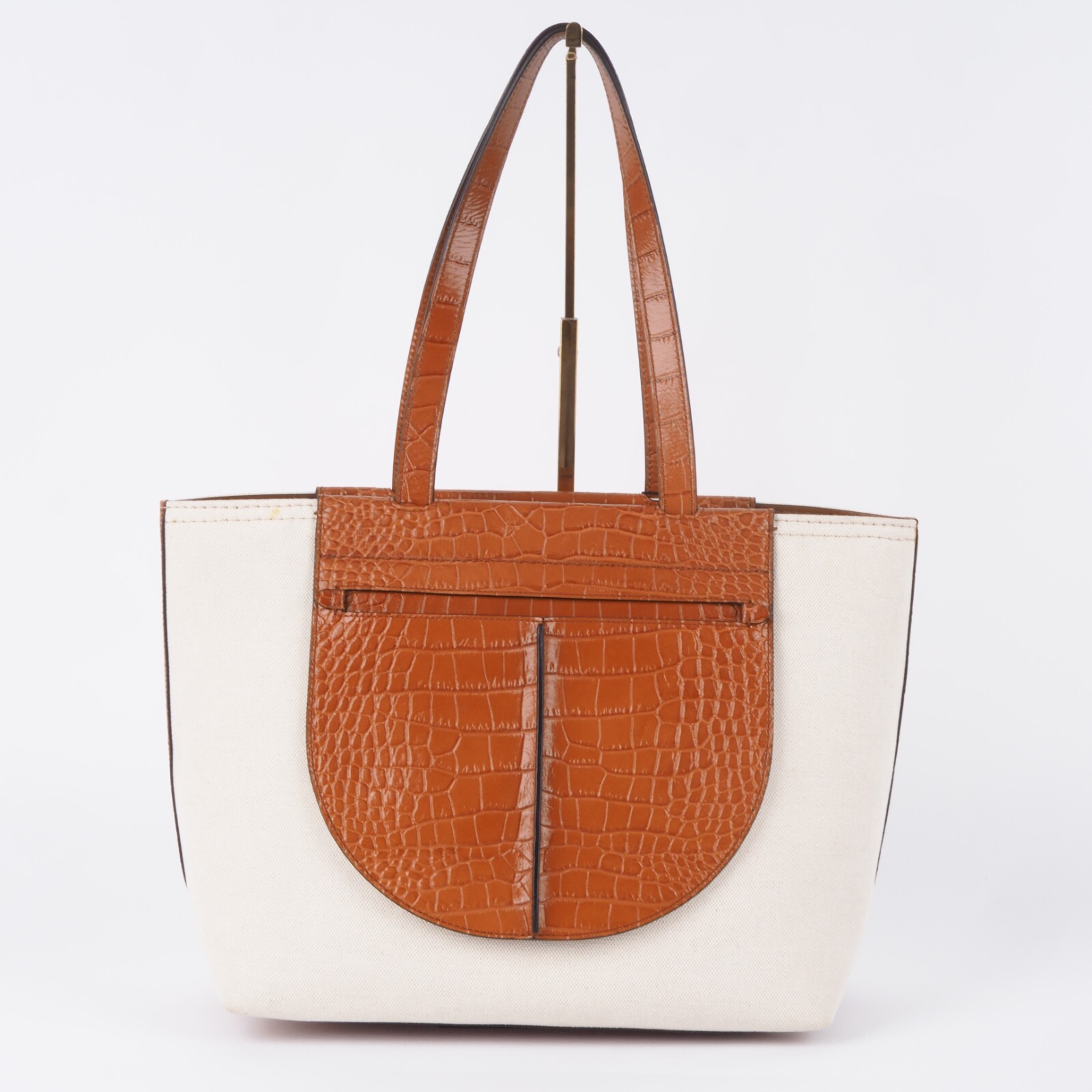 Diese stylische seltene Tote von TOD´S wurde aus Leinen Canvas und Leder in Kroko´-Optik in Italien hergestellt. Der Innenfutter ist aus butterweichem Veloursleder. Die Tasche ist überall ausverkauft. Sie ist wie neu, vielleicht 1-2 mal getragen. Ohne Gebrauchspuren, innen und außen sauber und frei von Gerüche.