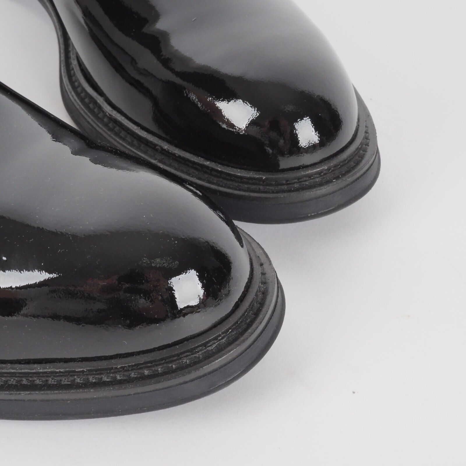Slipper-Mokassins aus glänzendem Lackleder. Eine Kollektion hochwertiger formeller Schuhe Made in Italy, die sich durch das Logo auf der Außensohle auszeichnet und sich ideal für Outfits mit einem praktischen und eleganten Stil eignet – echte Business-Allrounder.Obermaterial: 100% rindsleder; innenfutter hauptgewebe: 100% rindsleder; innenfutter zweites gewebe: 100% ziegenleder – spaltleder; decksohle: 100% rindsleder; sohle: 100% thermoplastisches polyurethan.