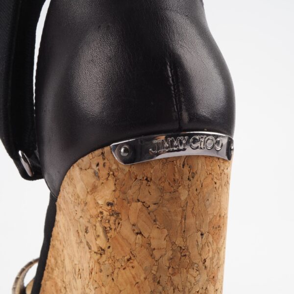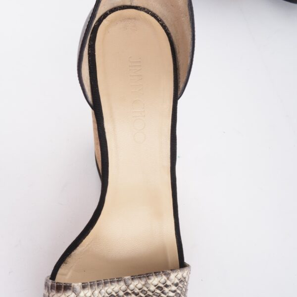 Diese stylische auffällige Neston Sandalen con JIMMY CHOO warein in Italien handgefertigt. Laufsohle aus Gummi, Innensohle Leder. Riemen aus echtem Schlangenleder. Absatz uns Platform aus Kork. Mit besonders hohem Absatz von ca. 12 cm. Platform 3 cm. Gr. 40