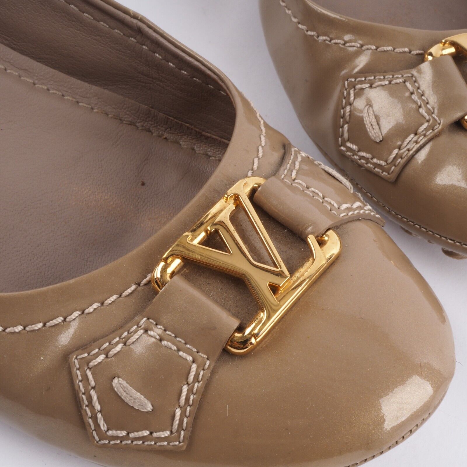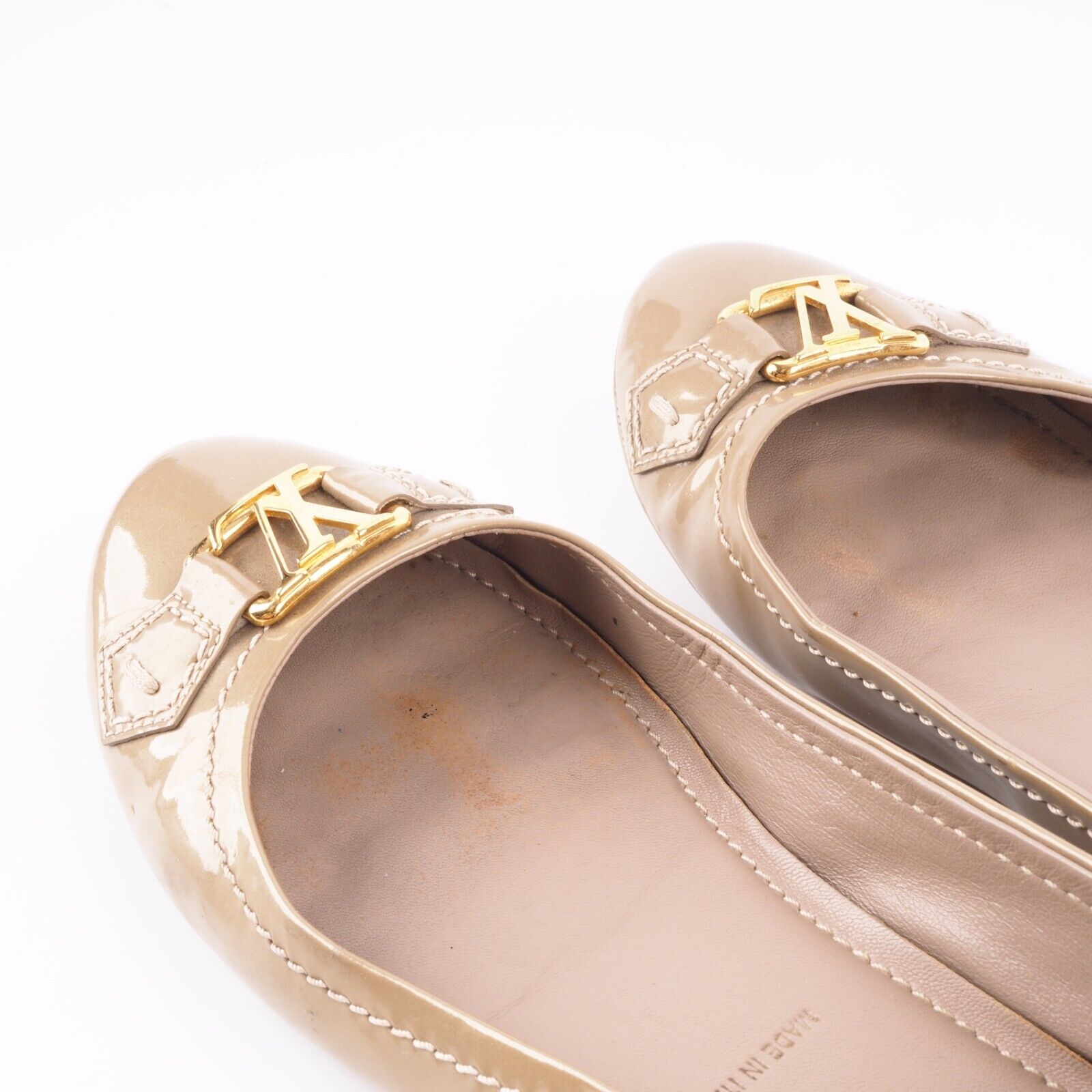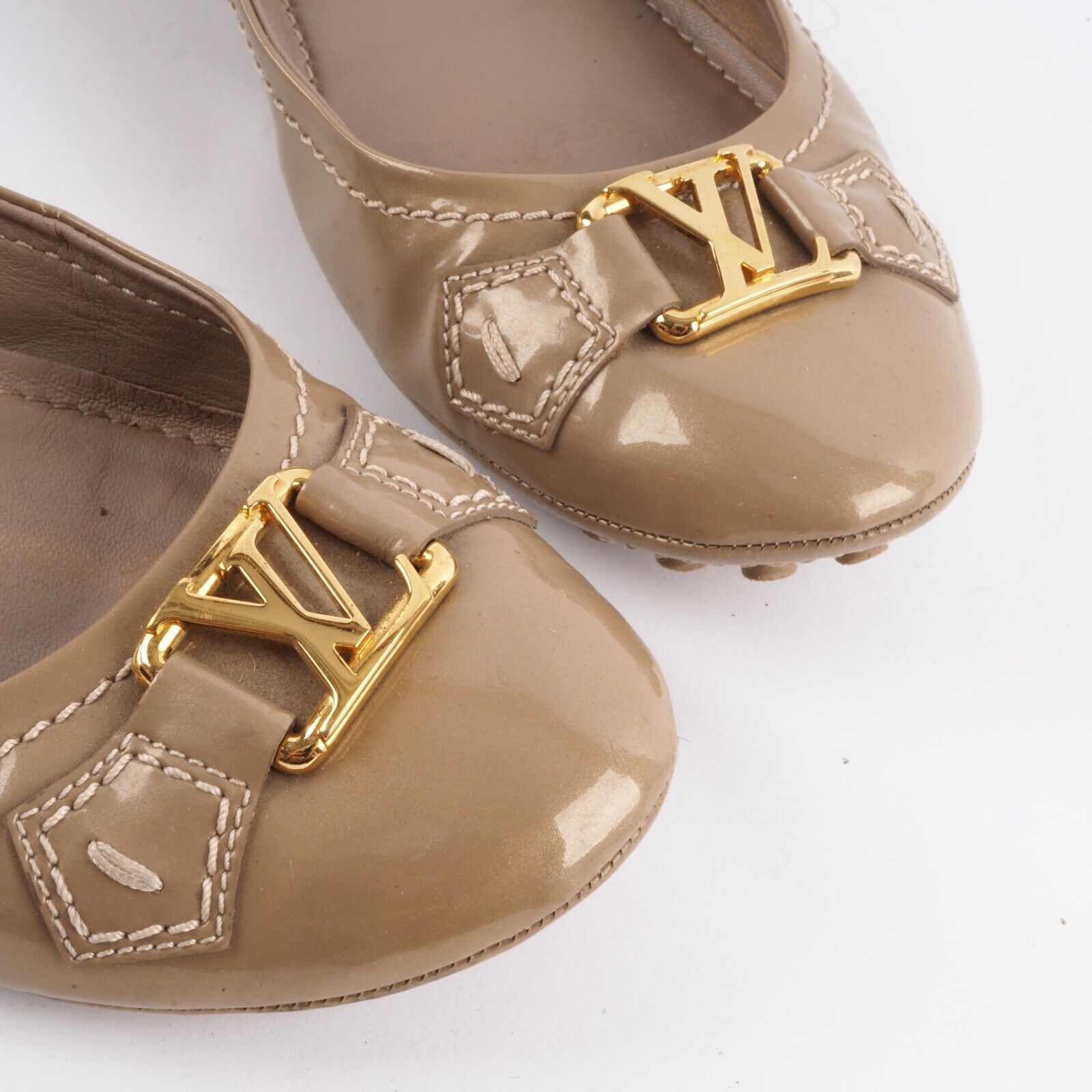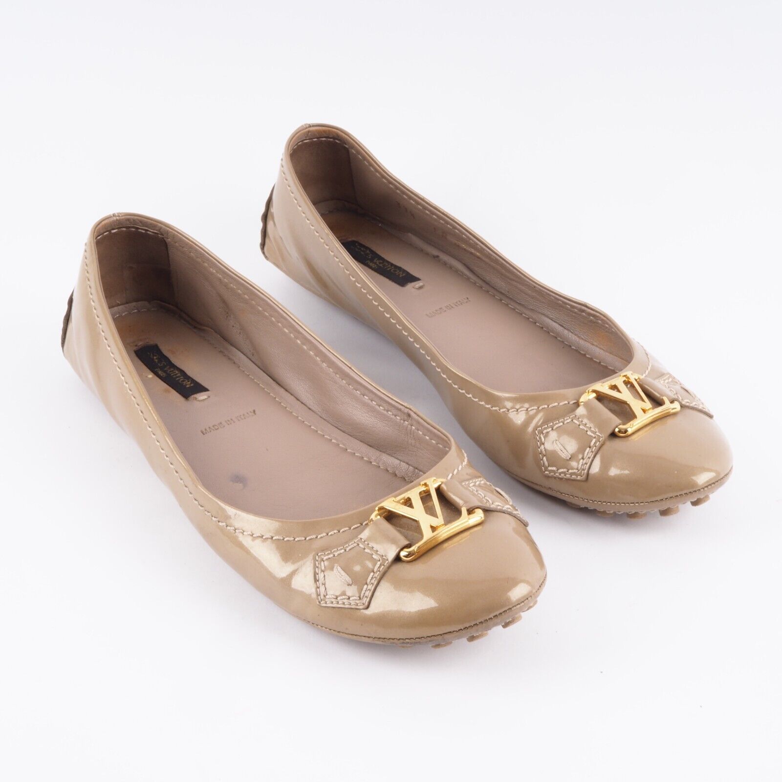 Diese stylische Ballerinas von Louis Vuitton wurden in 2012 in Italien aus hochwertigem Lackleder handgefertigt. Die Schuhe sind in gutem gebrauchten Zustand Gr. 38,5