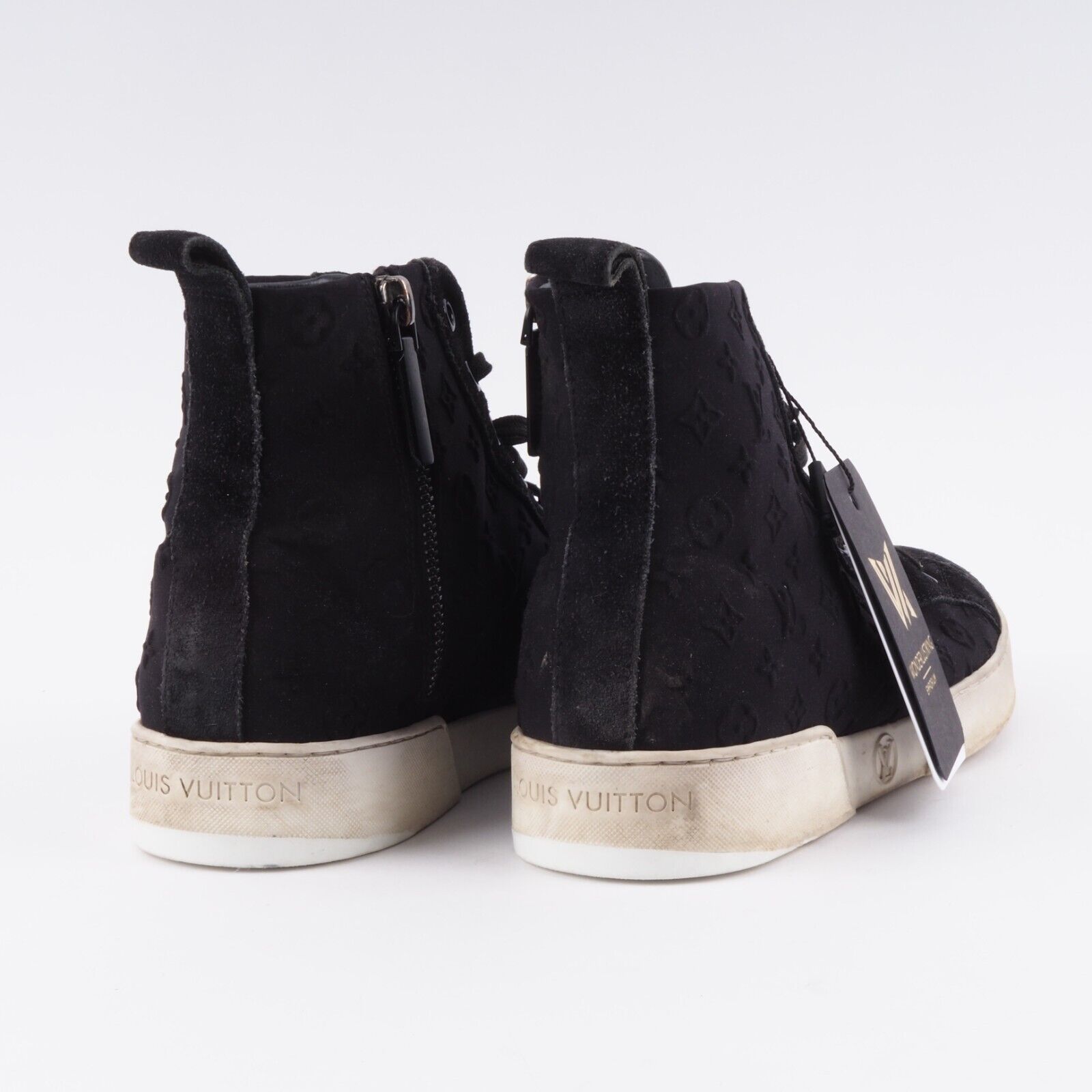 Diese stylische Stellar Sneakers von Louis Vuitton wurden im 2016 in Italien handgefertigt. Sie sind in gutem gebrauchten Zustand mit leichten Gebrauchspuren. Der Laufsohle wurde vom Fachmann erneuert und seitdem nicht benutzt. Die Schuhe kommen aus einem Raucherhaushalt, merkt man aber nur wenig. Der Reißverschluss Zieher wurde auch erneuert. Innen und außen relativ sauber und unbeschädigt. Gr. 37. Laufsohlenlänge: 26,5 cm.