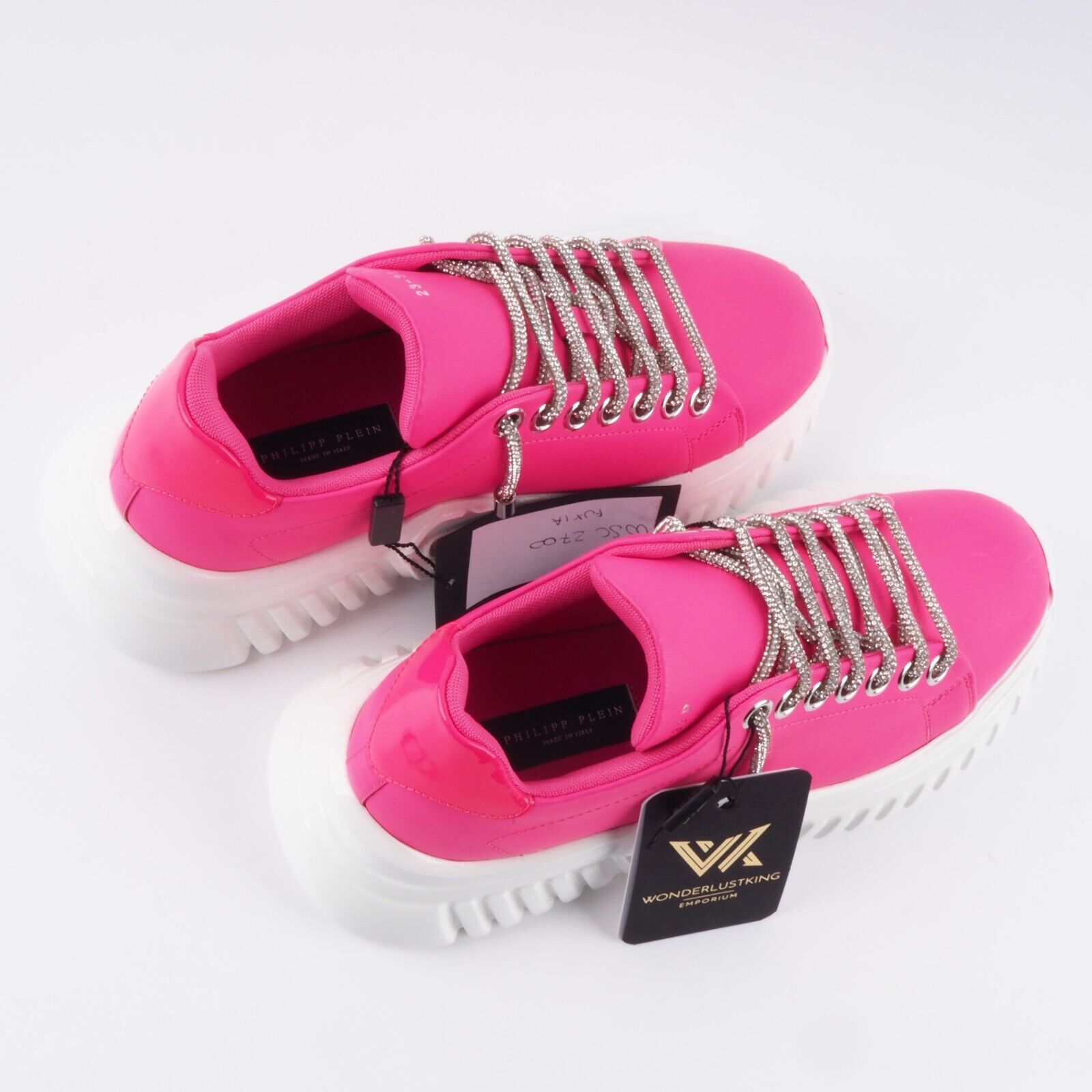 Diese Supersonic Sneakers von PHILIPP PLEIN sind mit einer spezielle Schnürung mit Glitzersteine versehen. Die Schuhe sind neu und unbenutzt. Gr. 37