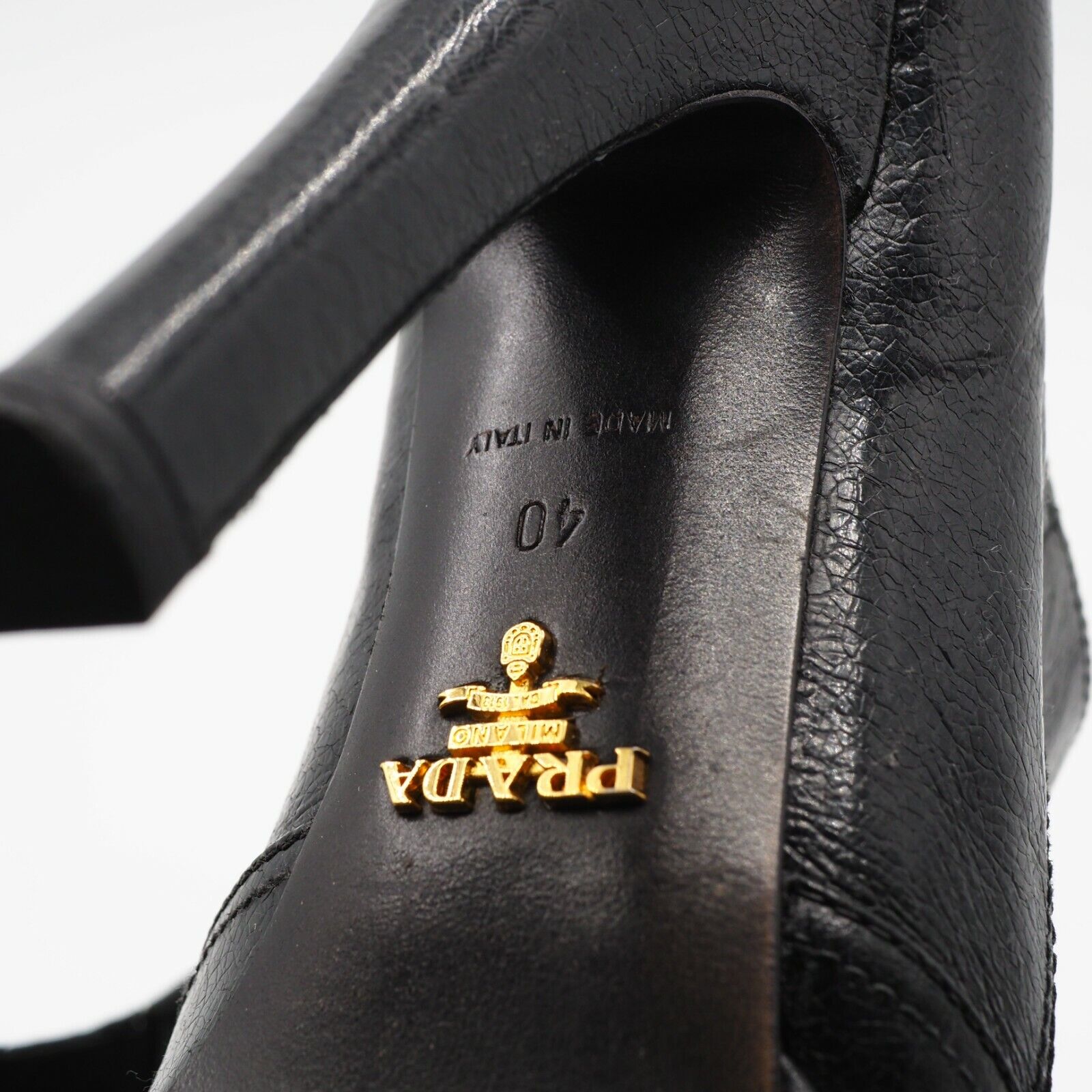 Diese top stylische Leder Prada Sandalen sind absolut neu im Originalkarton mit Staubbeutel. Ausstellungsstück, wurde anprobiert und hat klebereste von Etiketten. Gr. 40 Absatzhöhe: 12 cm.
