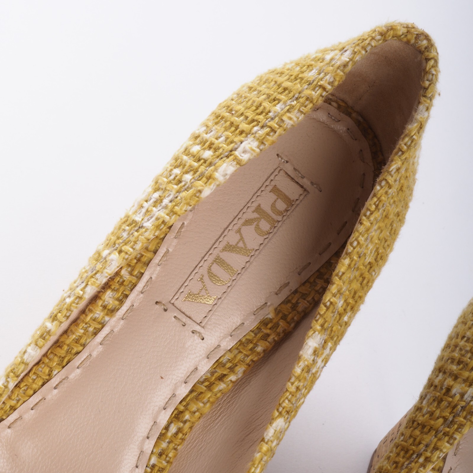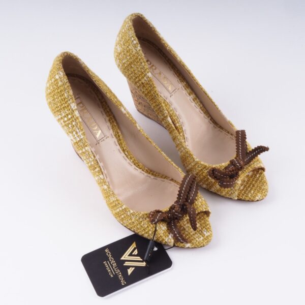 PRADA Tweed Chatreuse Pumps Luxus Designer Kork Wedges Pumps EU 38 OP: 750 €