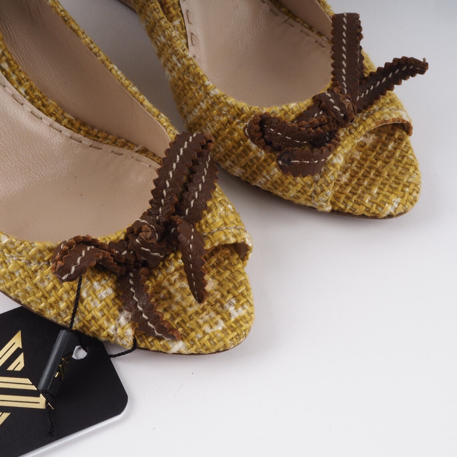 Tweed Chatreuse Pumps Luxus Designer Kork Wedges Pumps EU 38