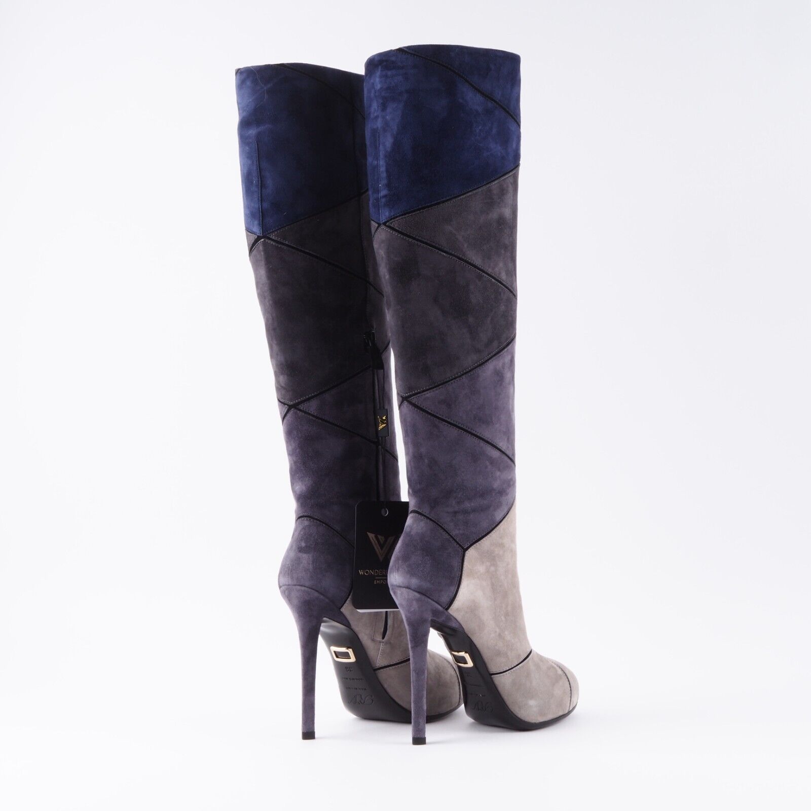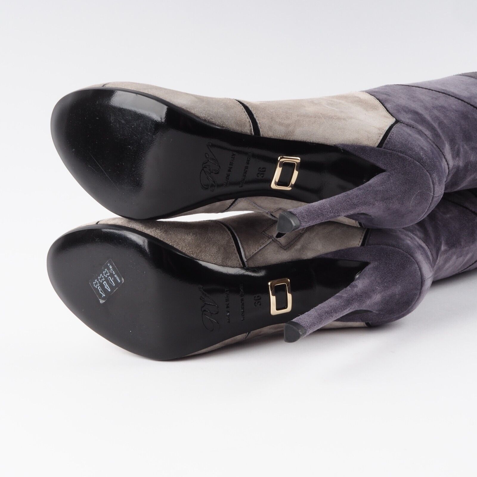 Diese seltene atemberaubende Prismick Stiefel von Roger Vivier wurde aus feinstem Velorusleder in Italien handgefertigt. Sogar die Absätze sind mit Veloursleder bezogen. Für Schmale Waden: Durchmesser ca 10 cm. Sie sind nagelneu, nur anprobiert. Kommen mit Staubbeutel und Karton. (Die Stiefelspanner sind kein Bestandteil des Angebots)