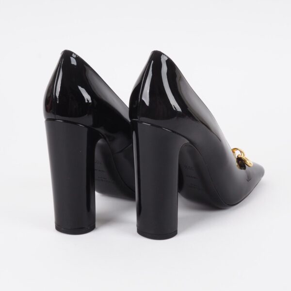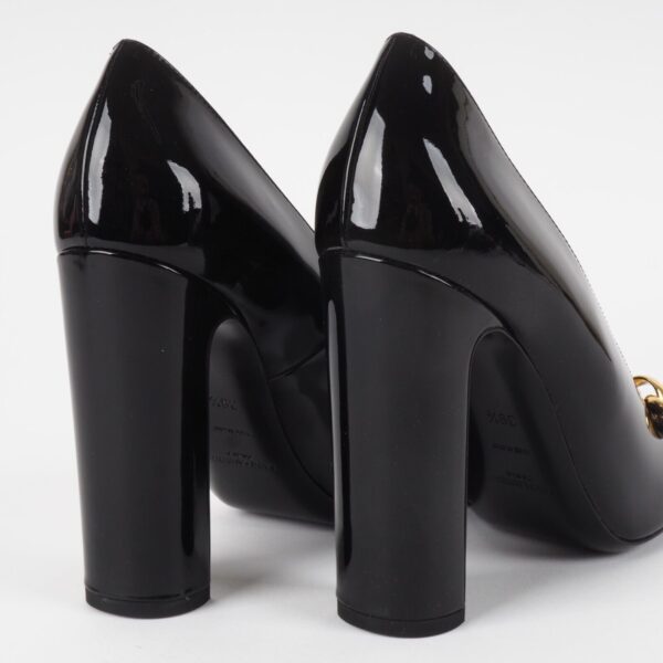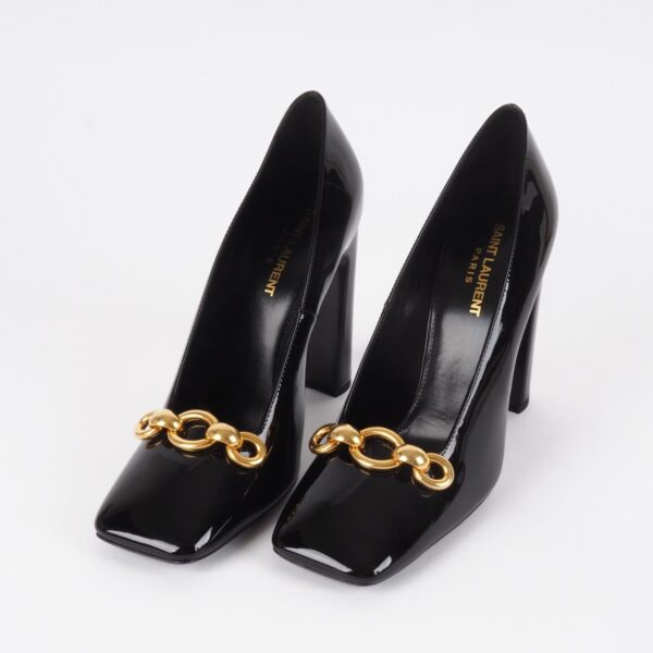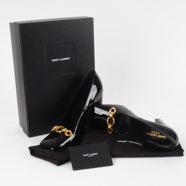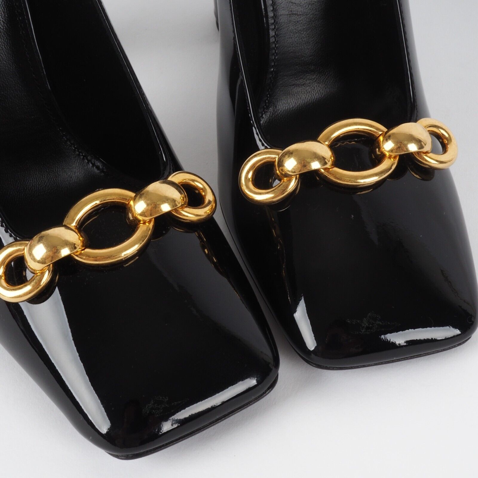 Diese wunderschöne Silvana Swing high heels Pumps von Saint Laurent wurdein in Italien aus feinel Lackleder gefertigt. Kette-Hardware in antik Gold Style. Die Schuhe sind brandneu, ungetragen im OVP mit Kärtchen und Staubbeutel. Gr. 39,5